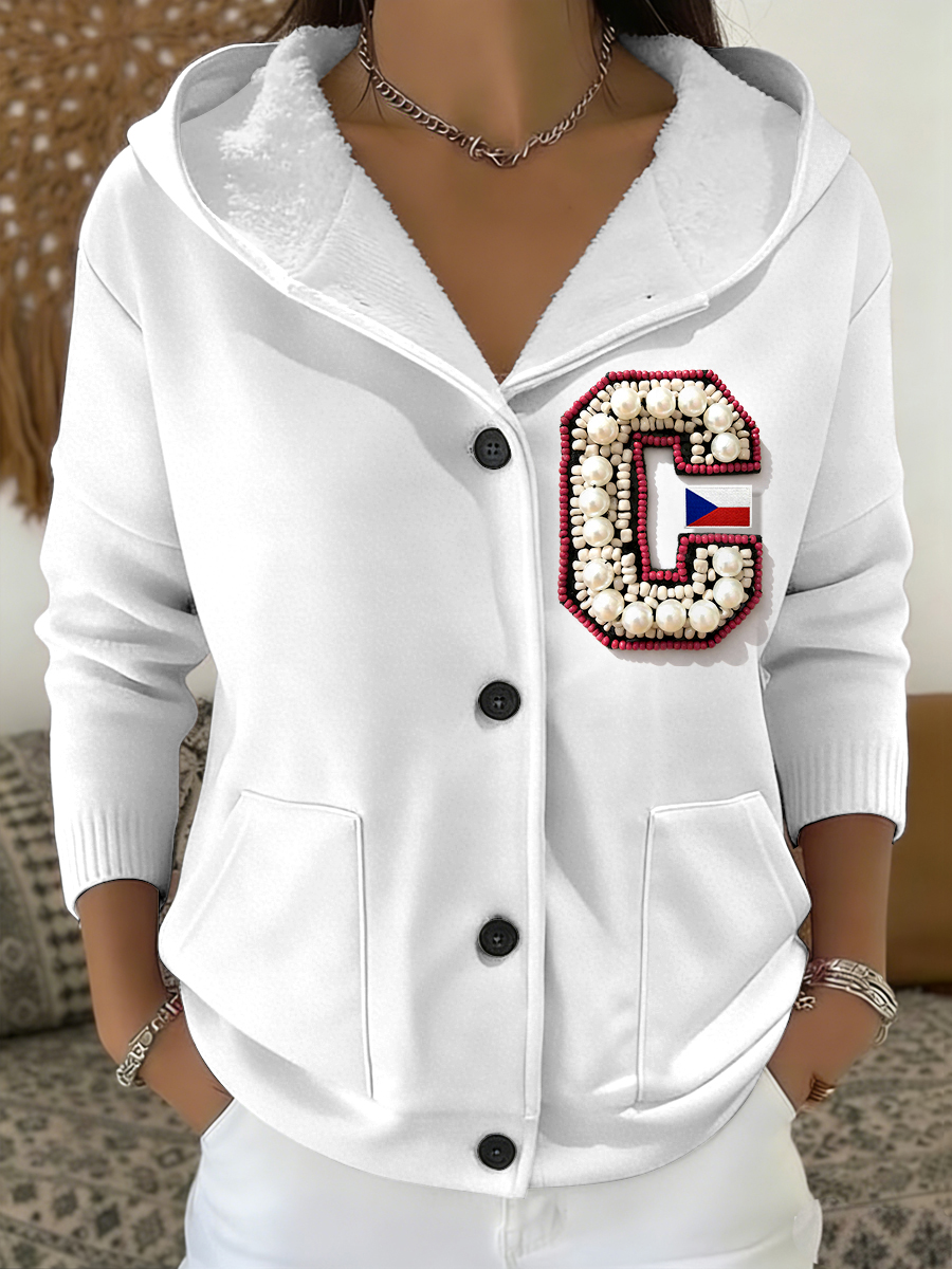 Dámské české počáteční c pearl design tištěné kabát s kapucinou