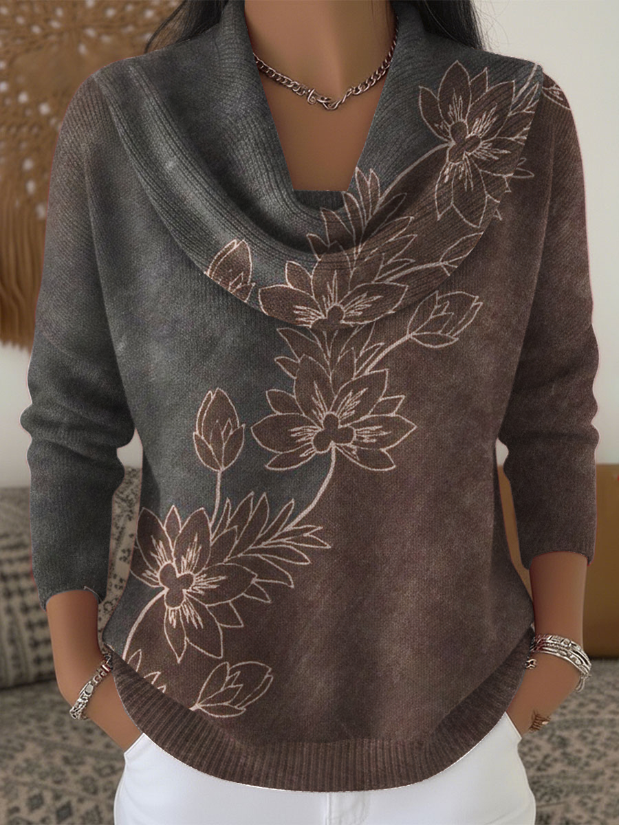 Dámské květinové tmavé svetr