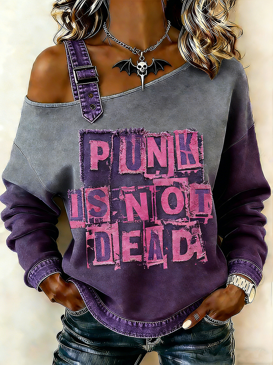 Dámské punkové lebky vytištěné jeden ramenní suspender příležitostný svetr