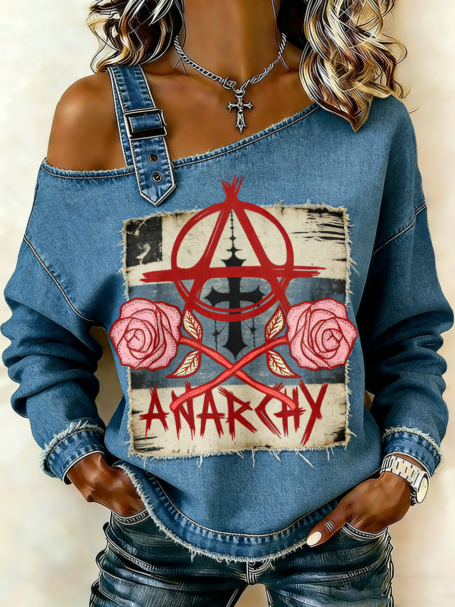 Dámské punky vytištěné jeden ramenní suspendér neformální mikina