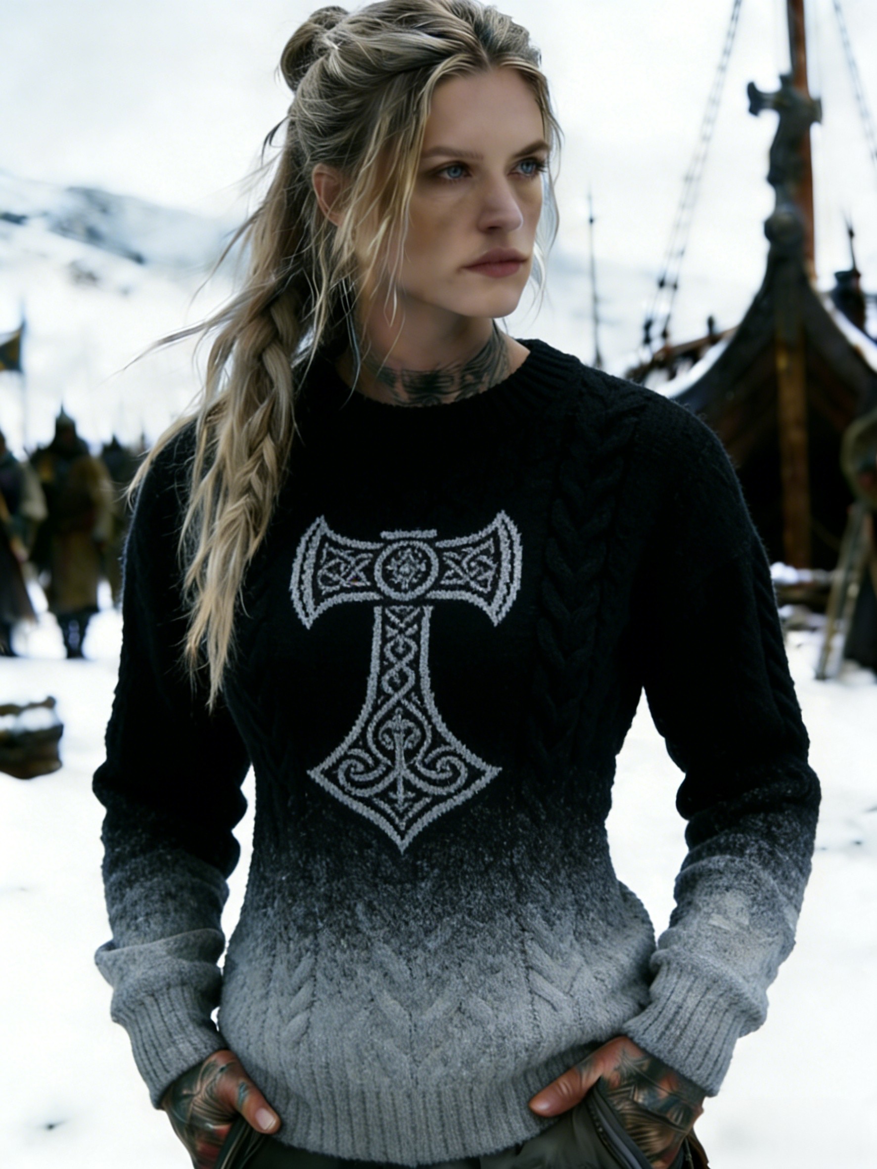 Dámské retro vikingské keltské uzel gradient příležitostný svetr