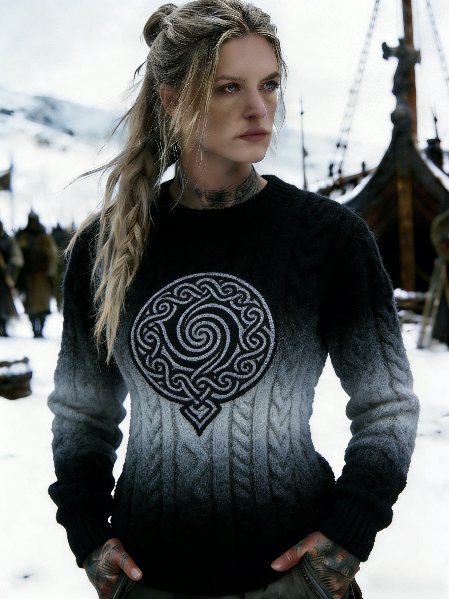 Dámské retro vikingské keltské uzel gradient příležitostný svetr