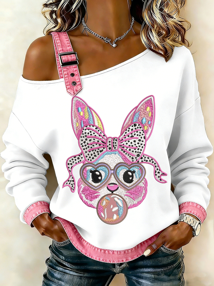 Dámské velikonoční králíček zvířecí vytištěné jedno ramenní suspendér neformální mikina