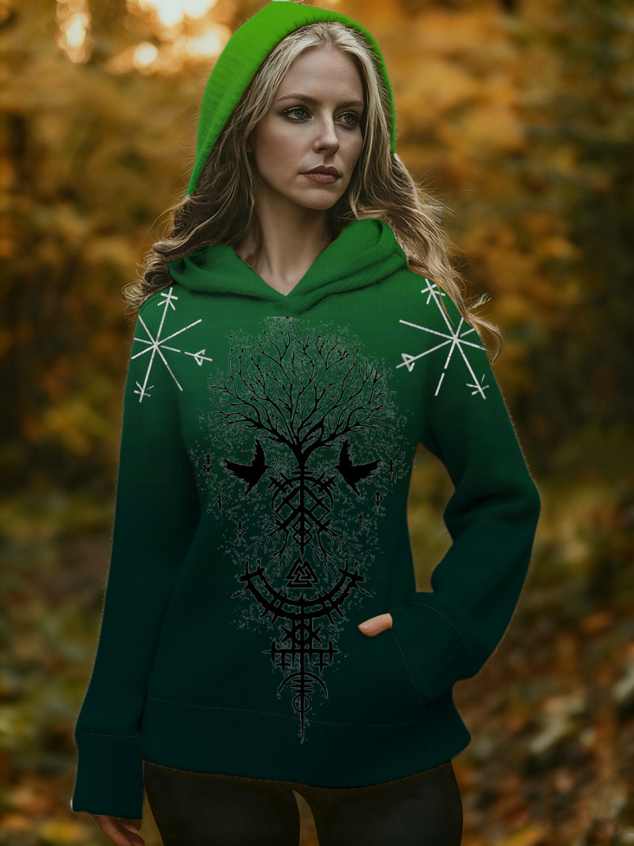 Dámské yggdrasil strom tisk svetr s kapucinou