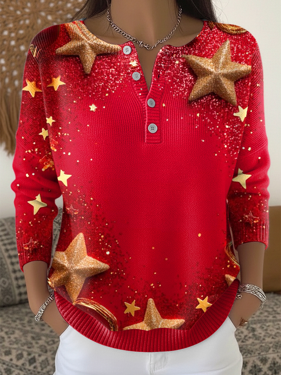Dámské zimní pletené jumper s vánoční zlatá hvězda design