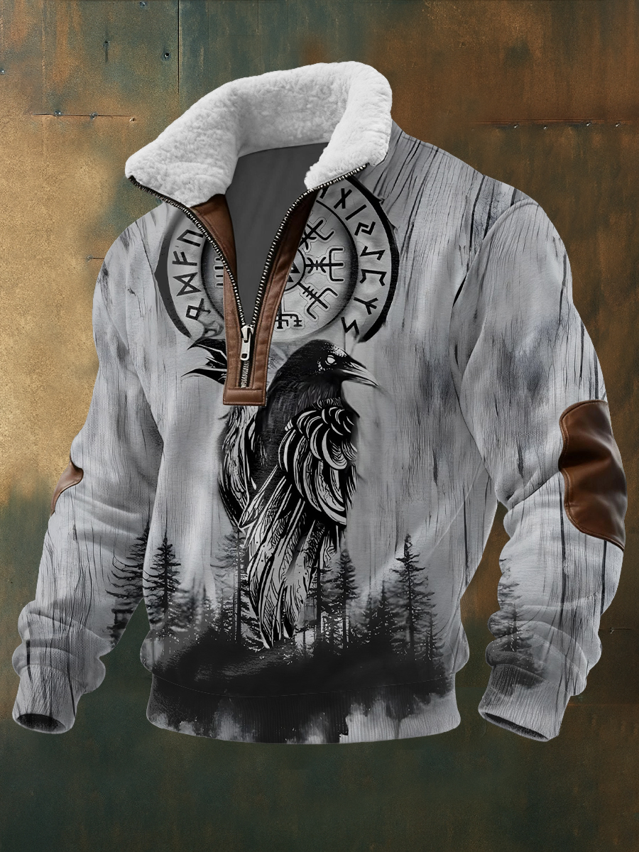 Men rustic grey raven & elder futhark woodgrain sweatshirt