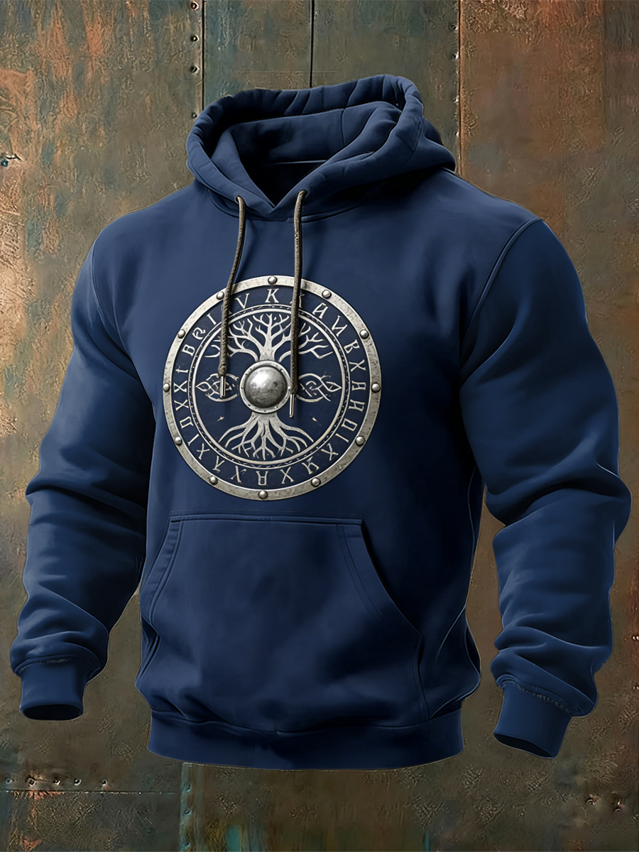 Men sleek navy yggdrasil & starší futhark shield hoodie