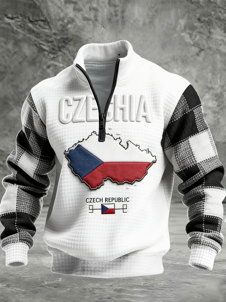 Pánská česká mapa patchwork print waffle weave sweatshirt
