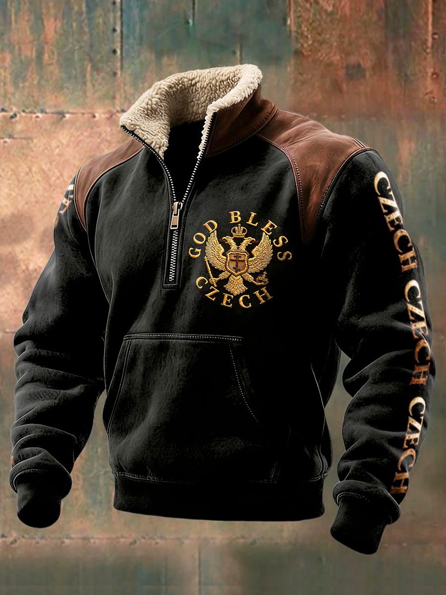 Pánské bůh žehnej české orly tisk černá stojanová mikina