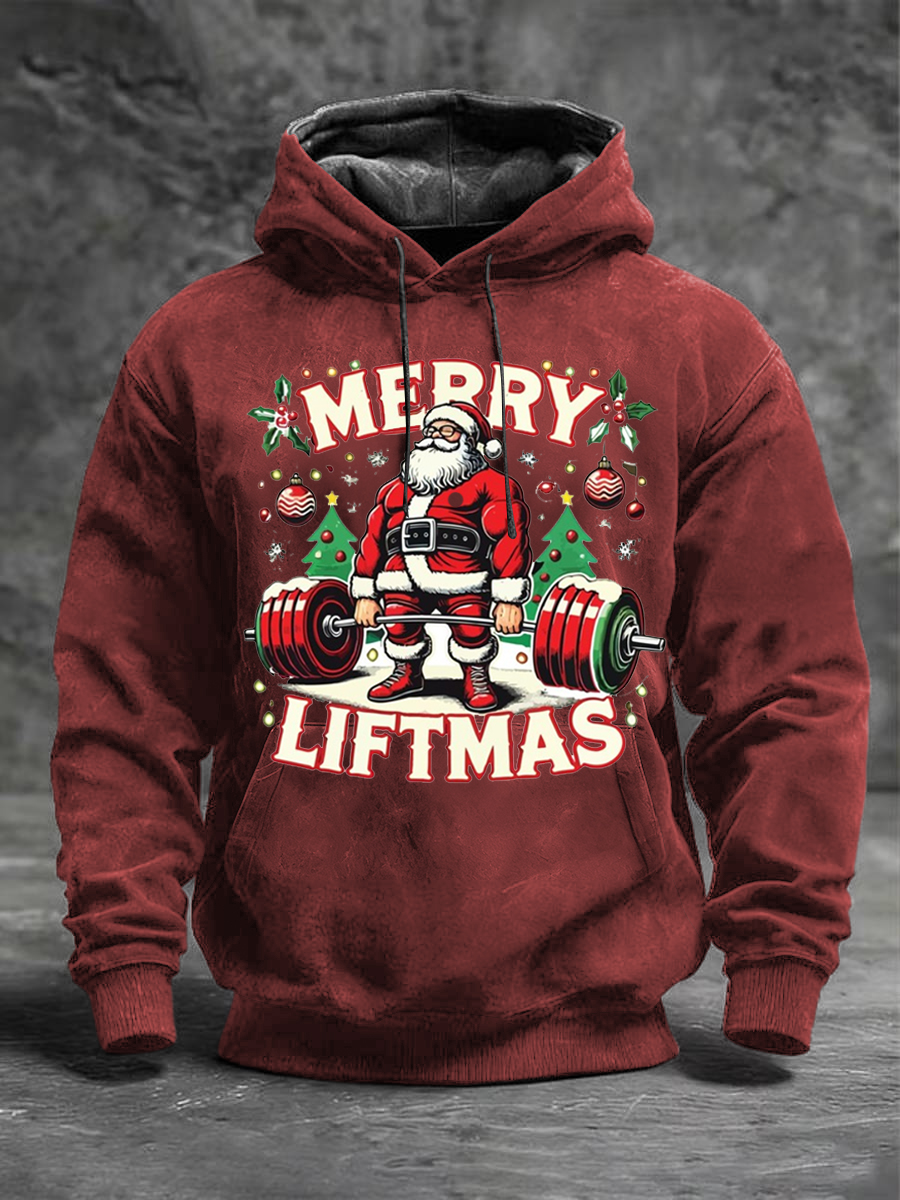 Pánské červené "veselé liftmas" santa vztlaková mikina