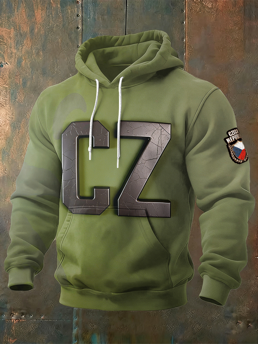 Pánské české cz písmeno tisk zelená mikina s kapucnou