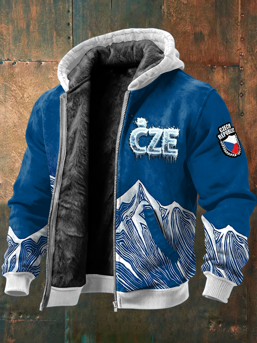 Pánské české cze textové tisk zimní fleecelemované bundy
