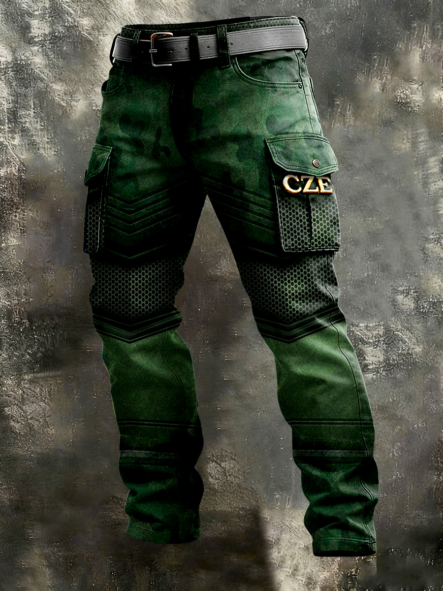 Pánské české cze zelené tištěné motocyklové kalhoty