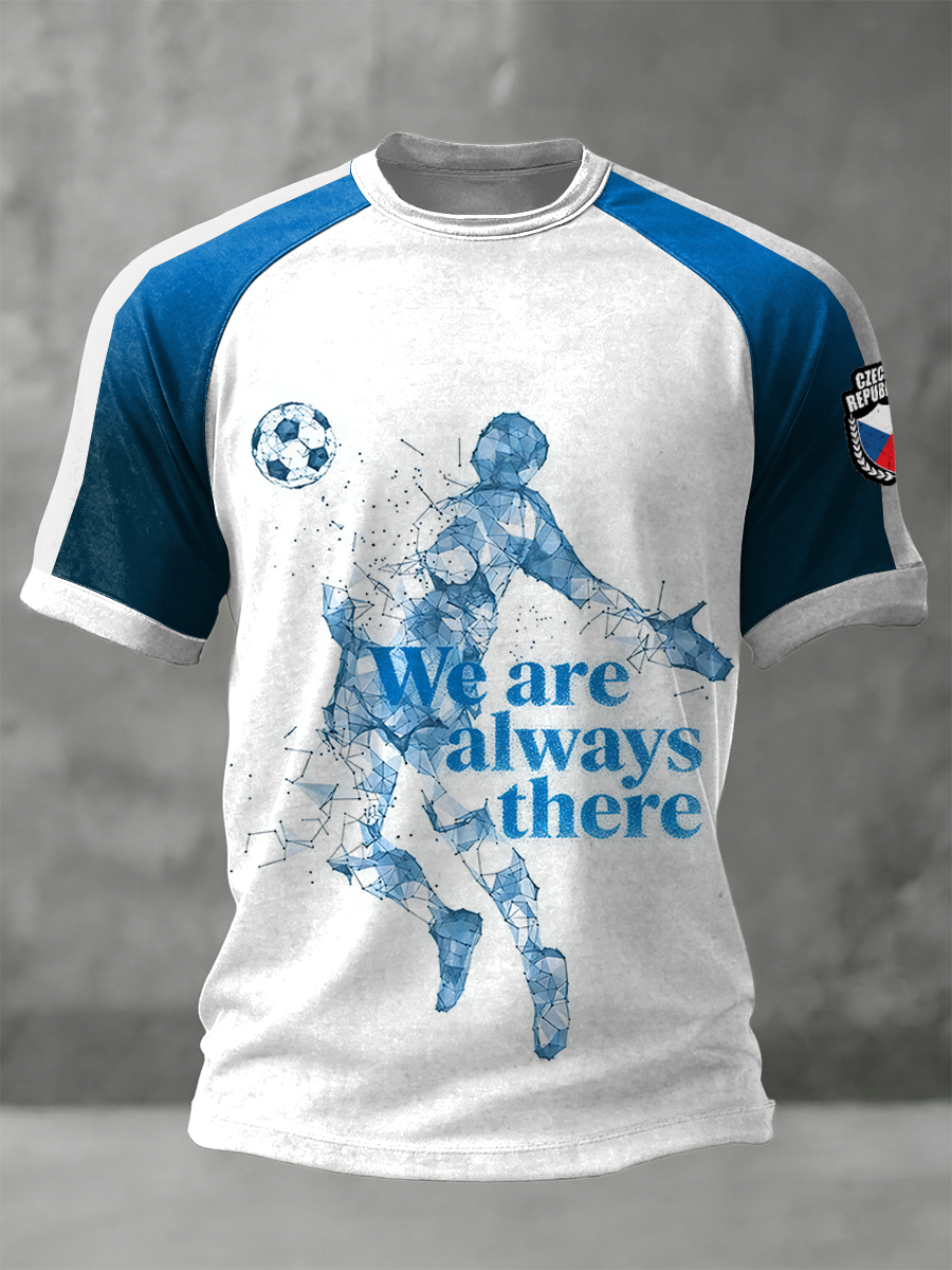 Pánské české fotbalové tlačítko modré a bílé patchwork s krátkými rukávy