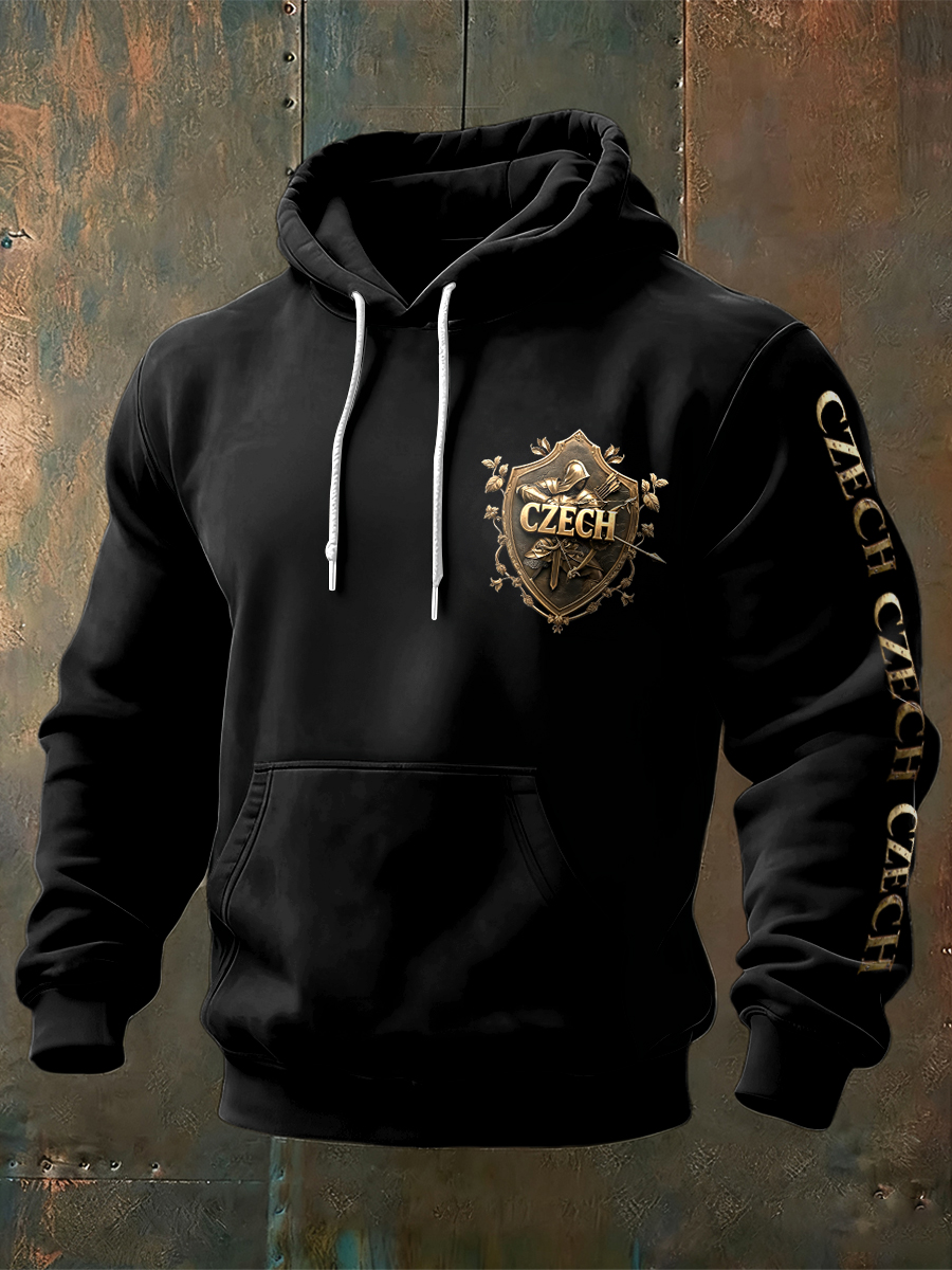Pánské české kovové tlače černá mikina s kapucnou