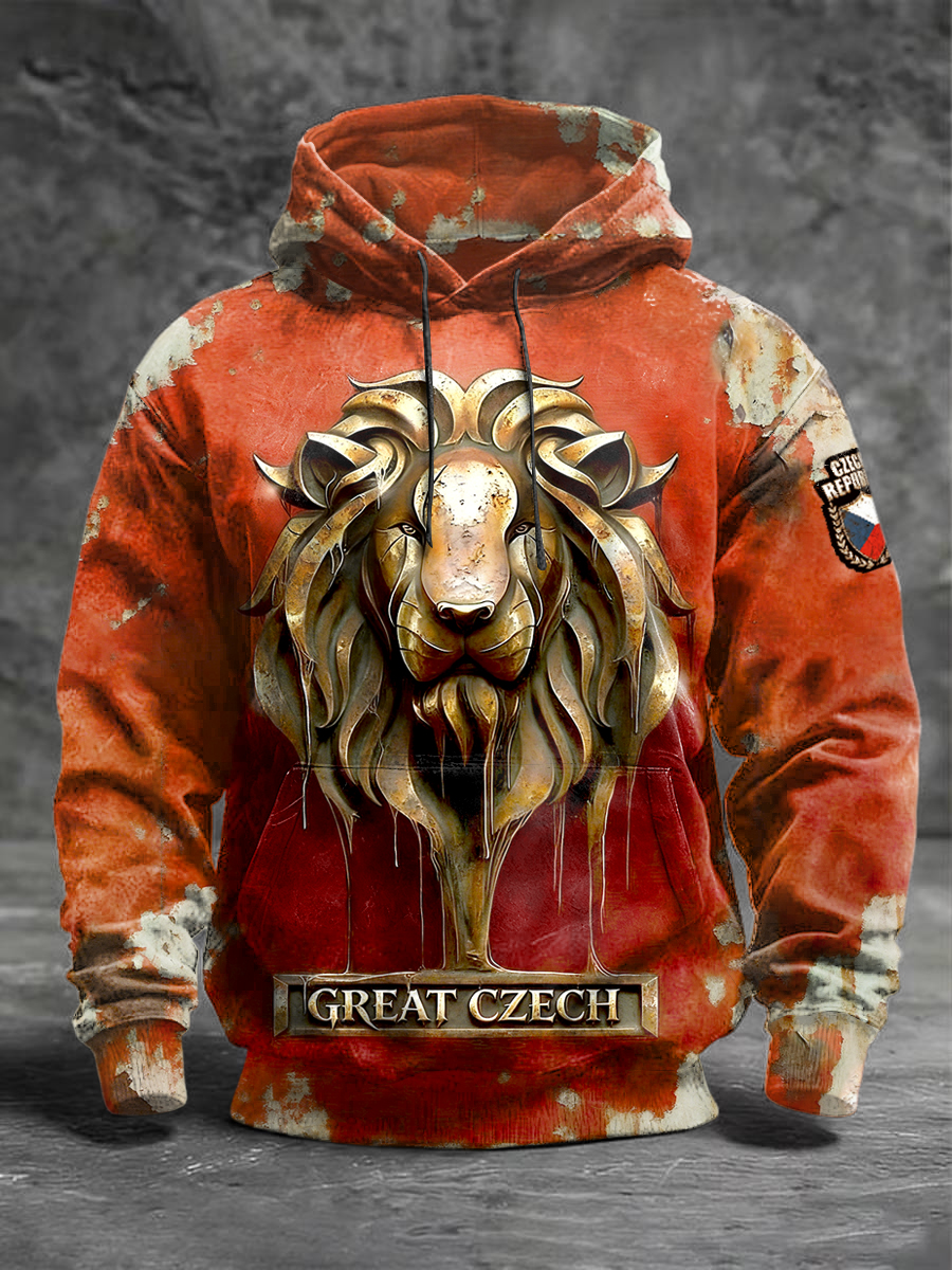 Pánské české lev tisk vintage red hooded sweatshirt