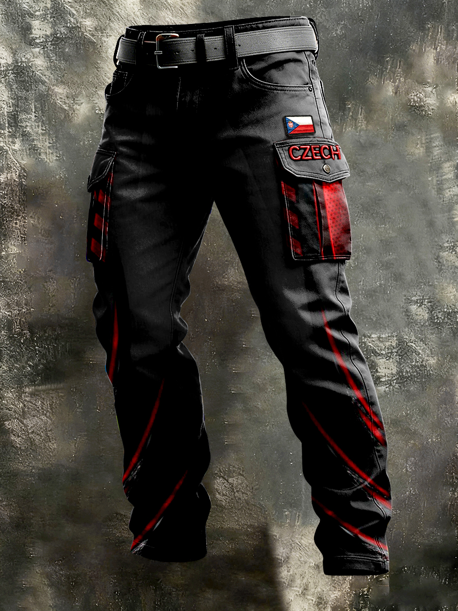 Pánské české vlajky tisk černé minimalistické pracovní kalhoty