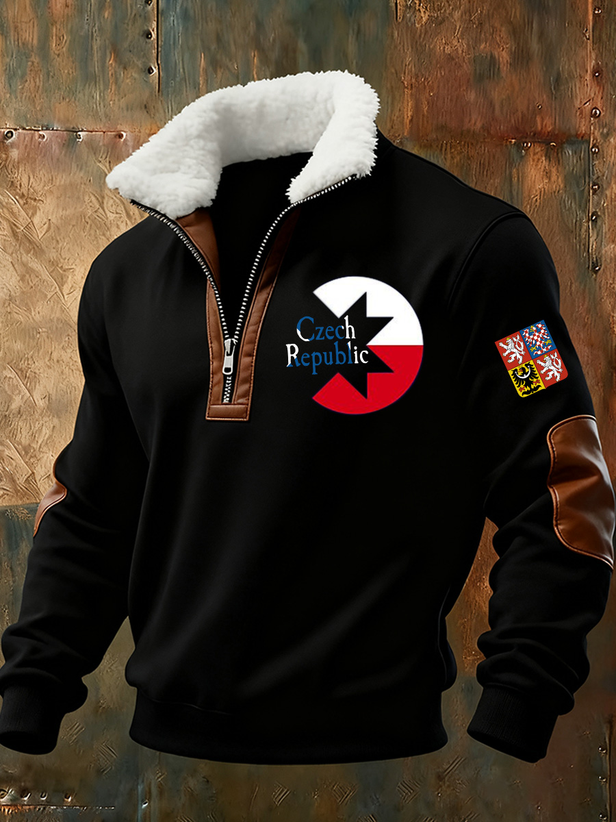 Pánské české vlajky tisk standup golier pohodlná mikina