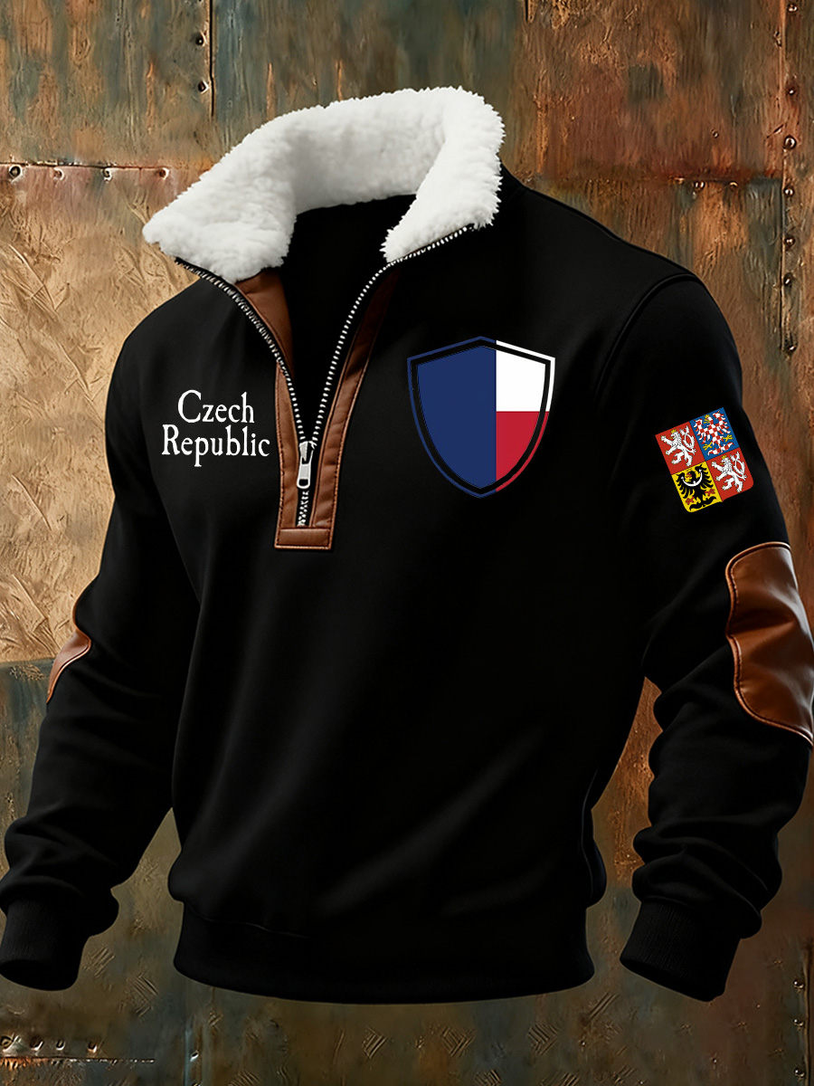 Pánské české vlajky tisk standup golier pohodlná mikina