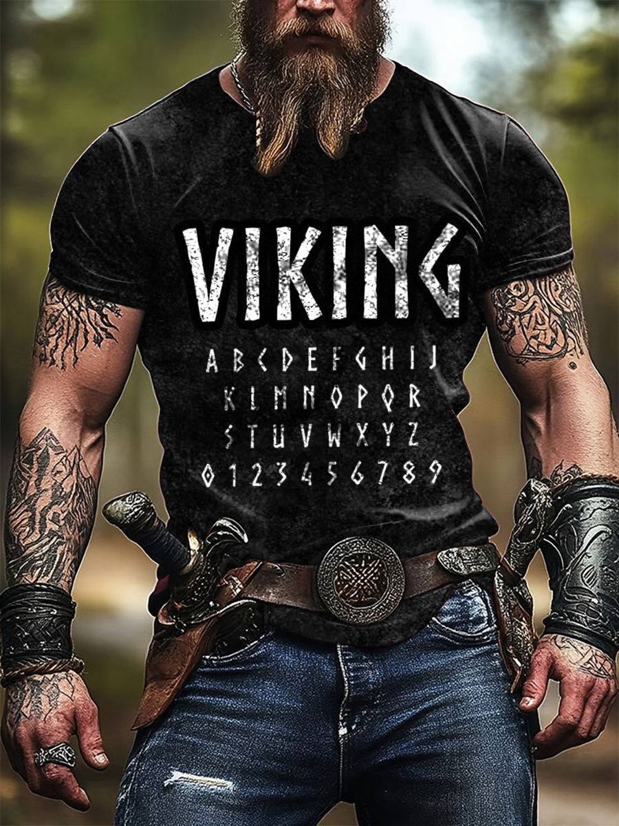 Pánské edgy vikingské abecedy & číslo tisk trička