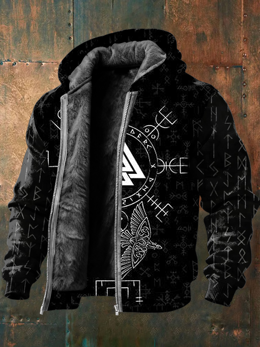 Pánské elegantní norské rune & valknut print fleecelined jacket