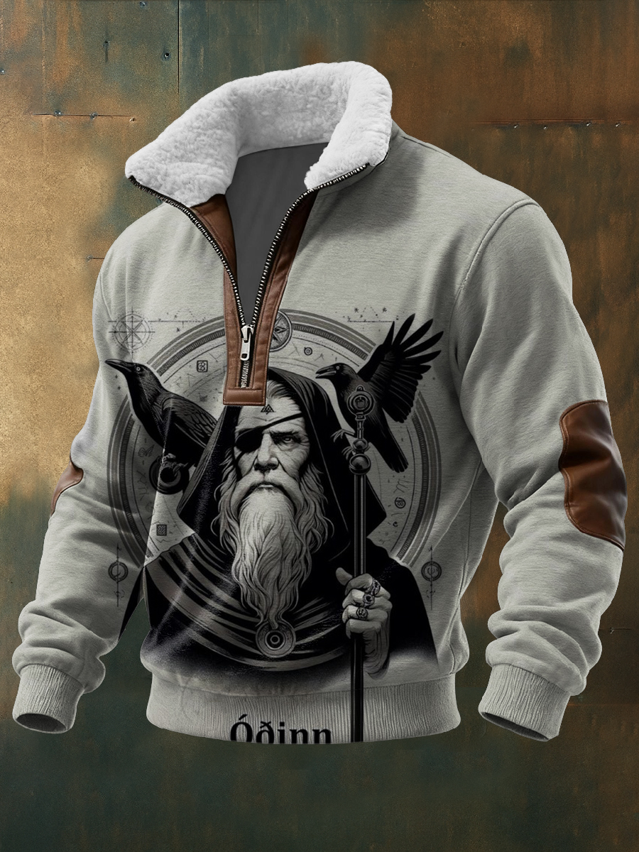 Pánské elegantní odin & ravens norse print sherpa collar sweatshirt