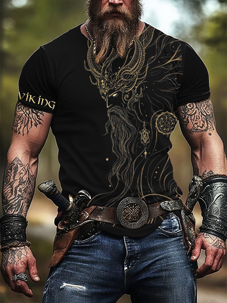 Pánské elegantní zlaté vikingské obrázek otiskové tričko