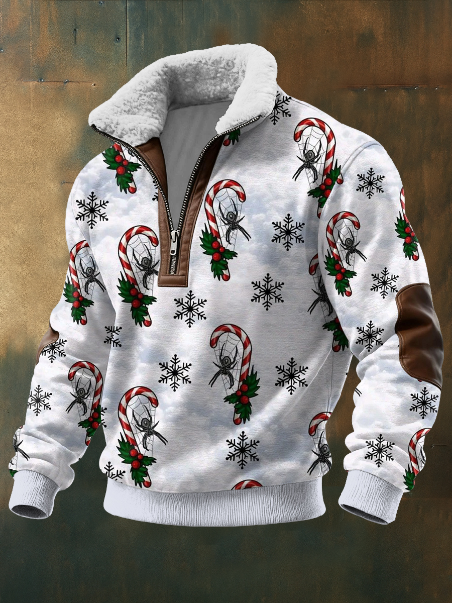 Pánské gotické vánoce tištěné dlouhé rukávy stand up golier jehňata zips top
