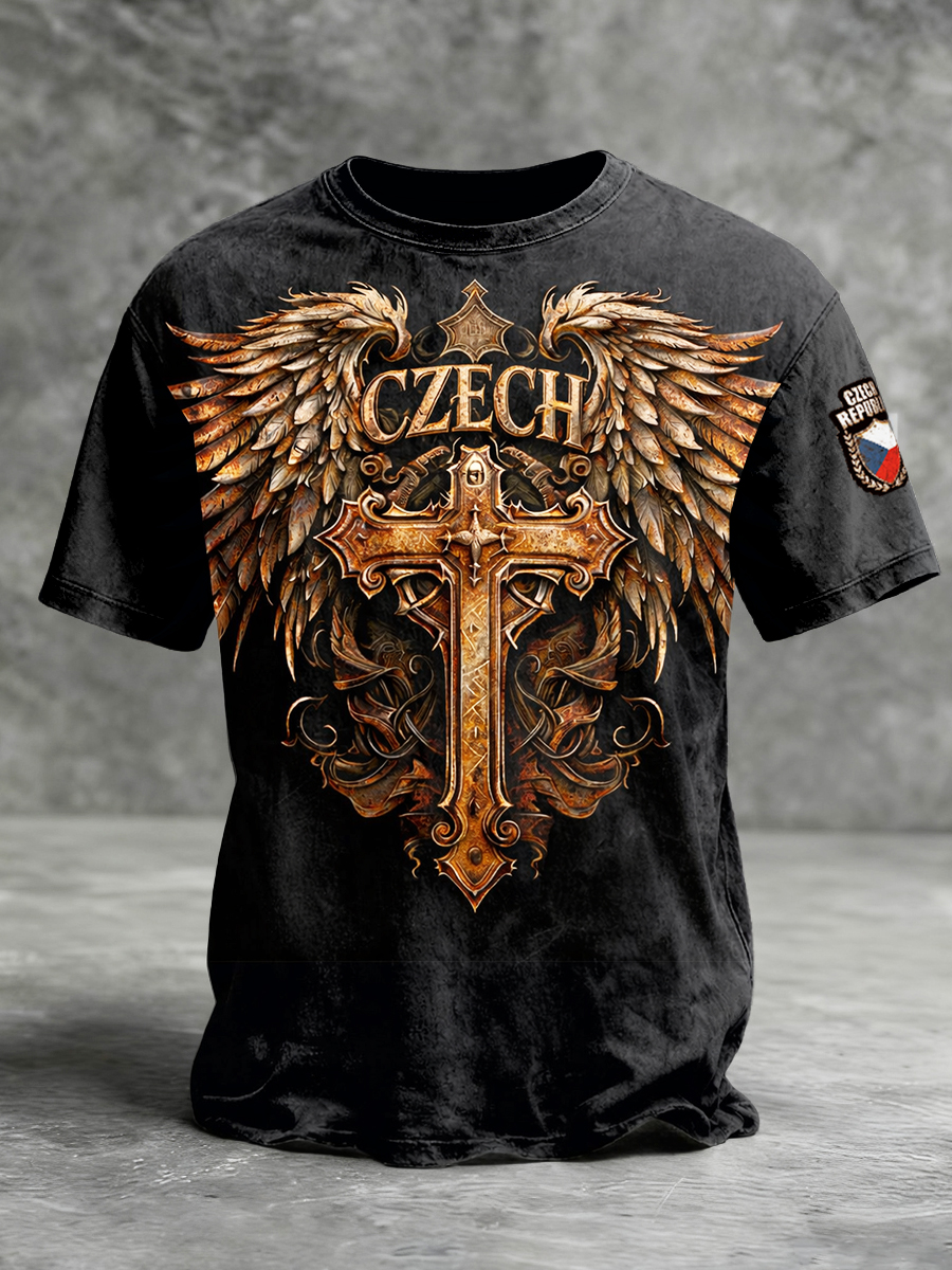 Pánské křížové křížové křížové tlače české černé tričko