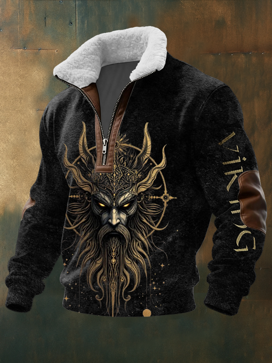 Pánské majestátní pozlacené viking head print sherpa golier sweatshirt
