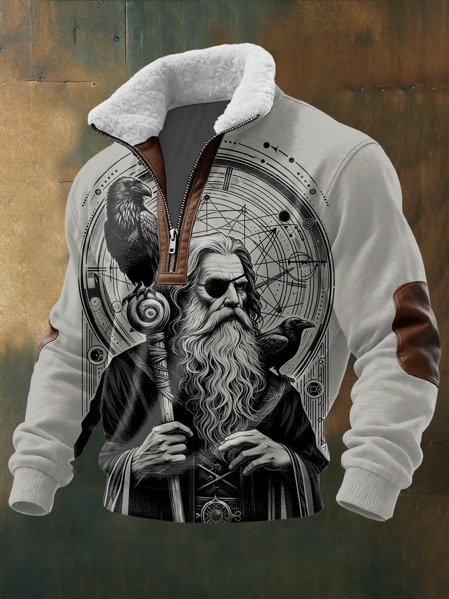 Pánské mystické norské sage & raven print sherpagolier pullover