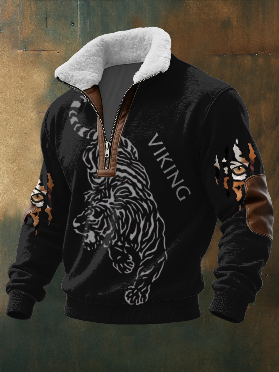 Pánské odvážné viking tiger grafické sherpagolier pullover