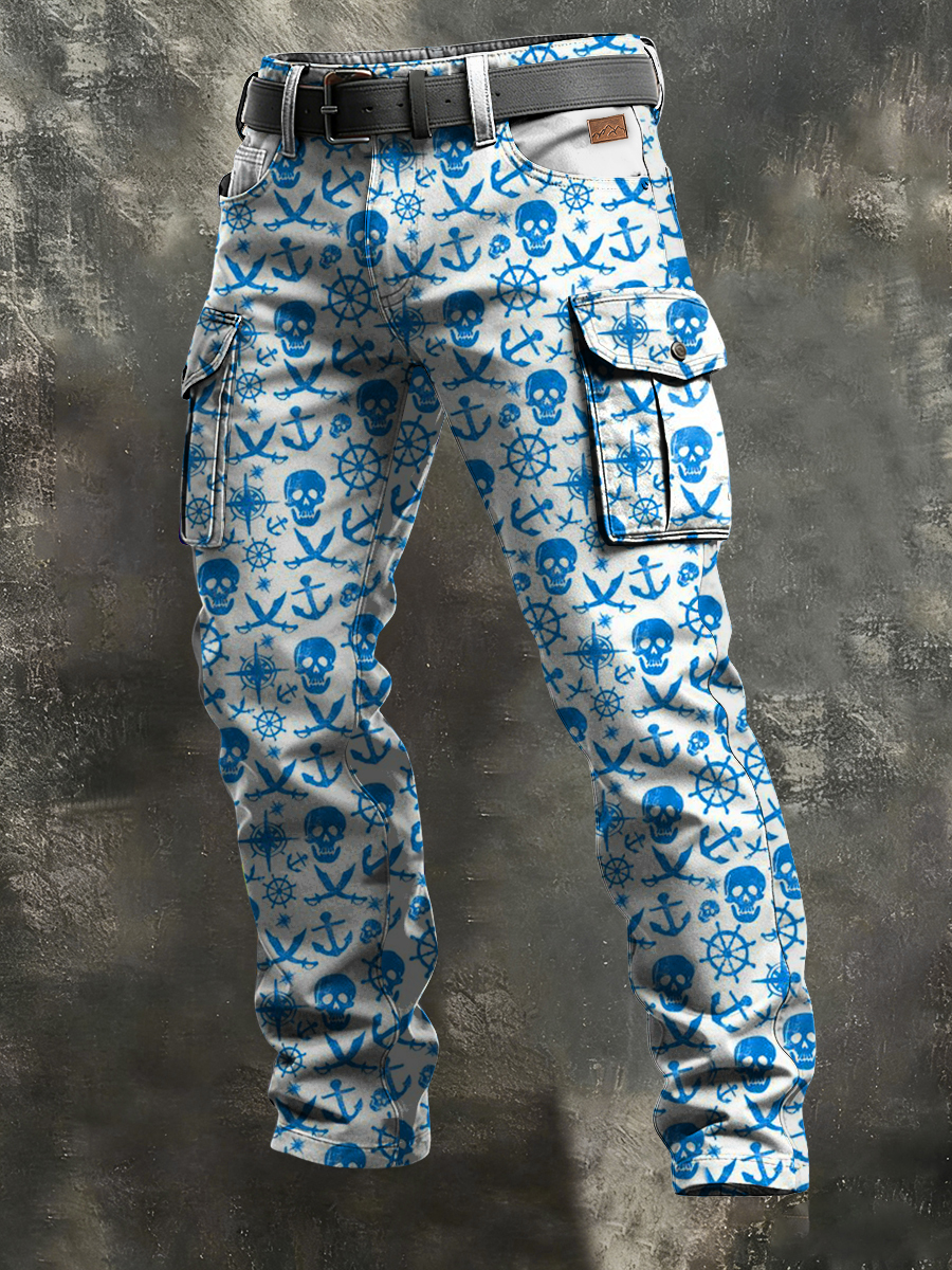 Pánské retro dovolená podnikání lebka umění tisk příležitostné pracovní šaty kalhoty