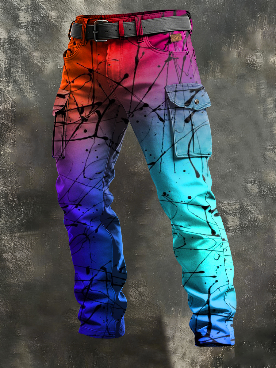Pánské retro dovolená podnikání psychedelické umění tisk neformální pracovní kalhoty
