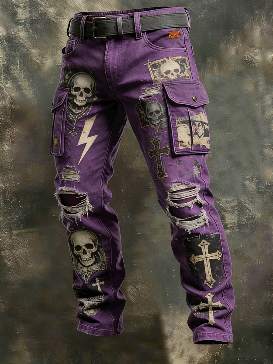 Pánské retro dovolená podnikání punk lebka umění tisk příležitostné pracovní šaty kalhoty