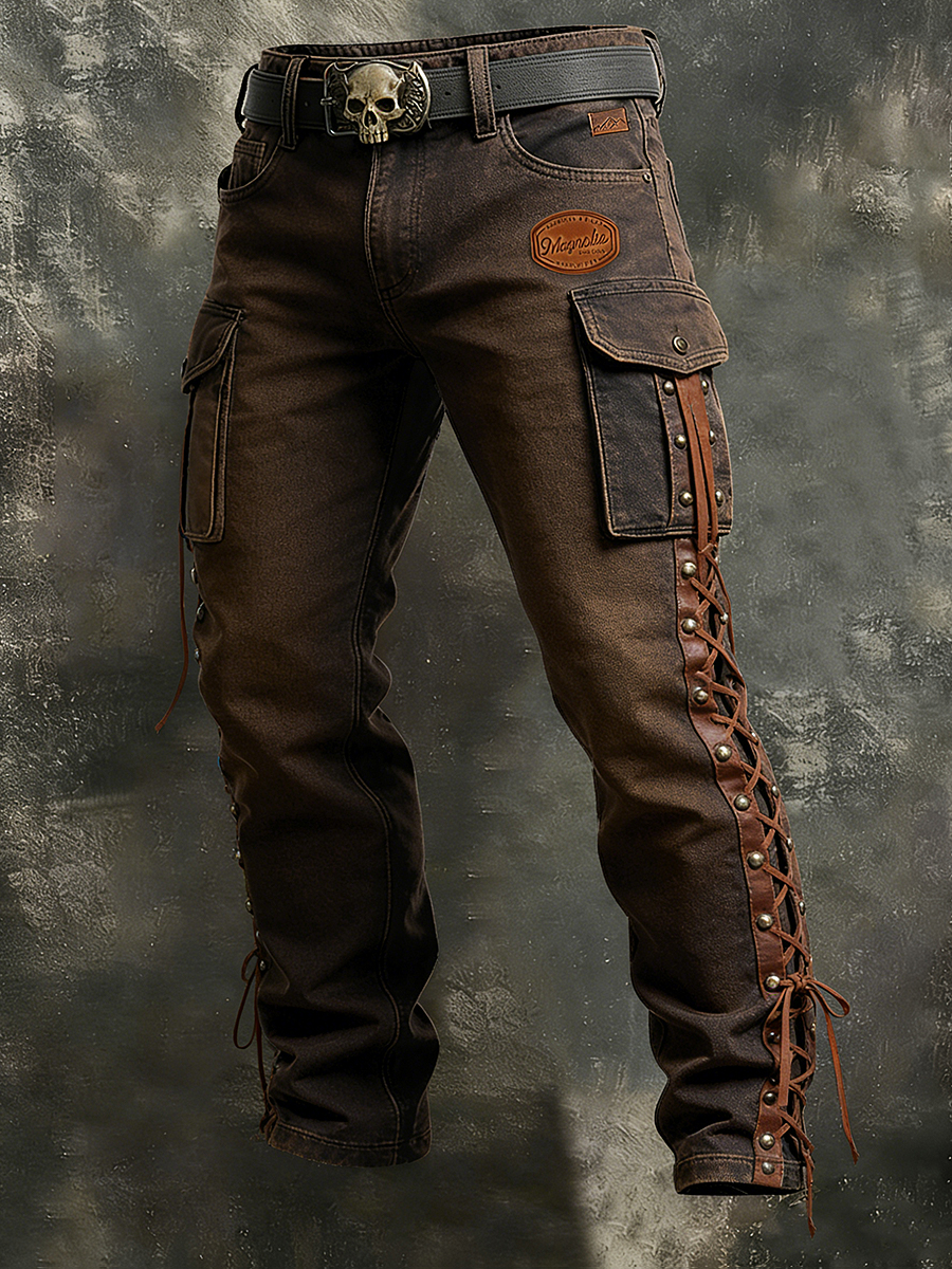 Pánské retro dovolená podnikání west art print casual pracovní šaty kalhoty