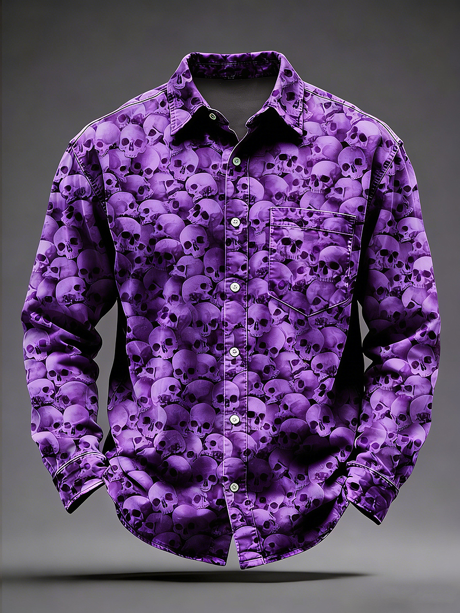 Pánské retro psychedelické lebky vytištěné dlouhé rukávy kapesní košile
