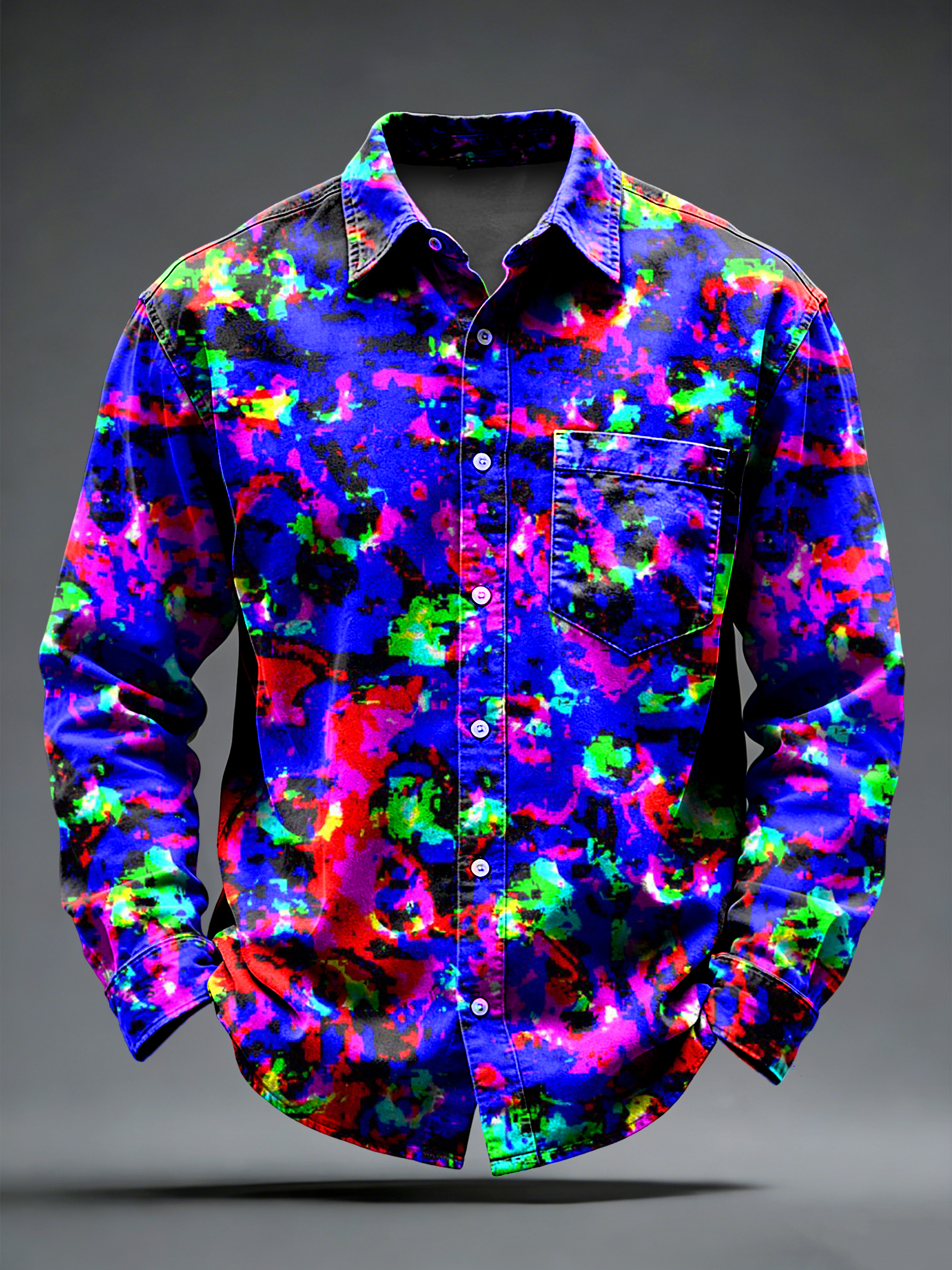 Pánské retro psychedelické tištěné dlouhé rukávy kapesní košile