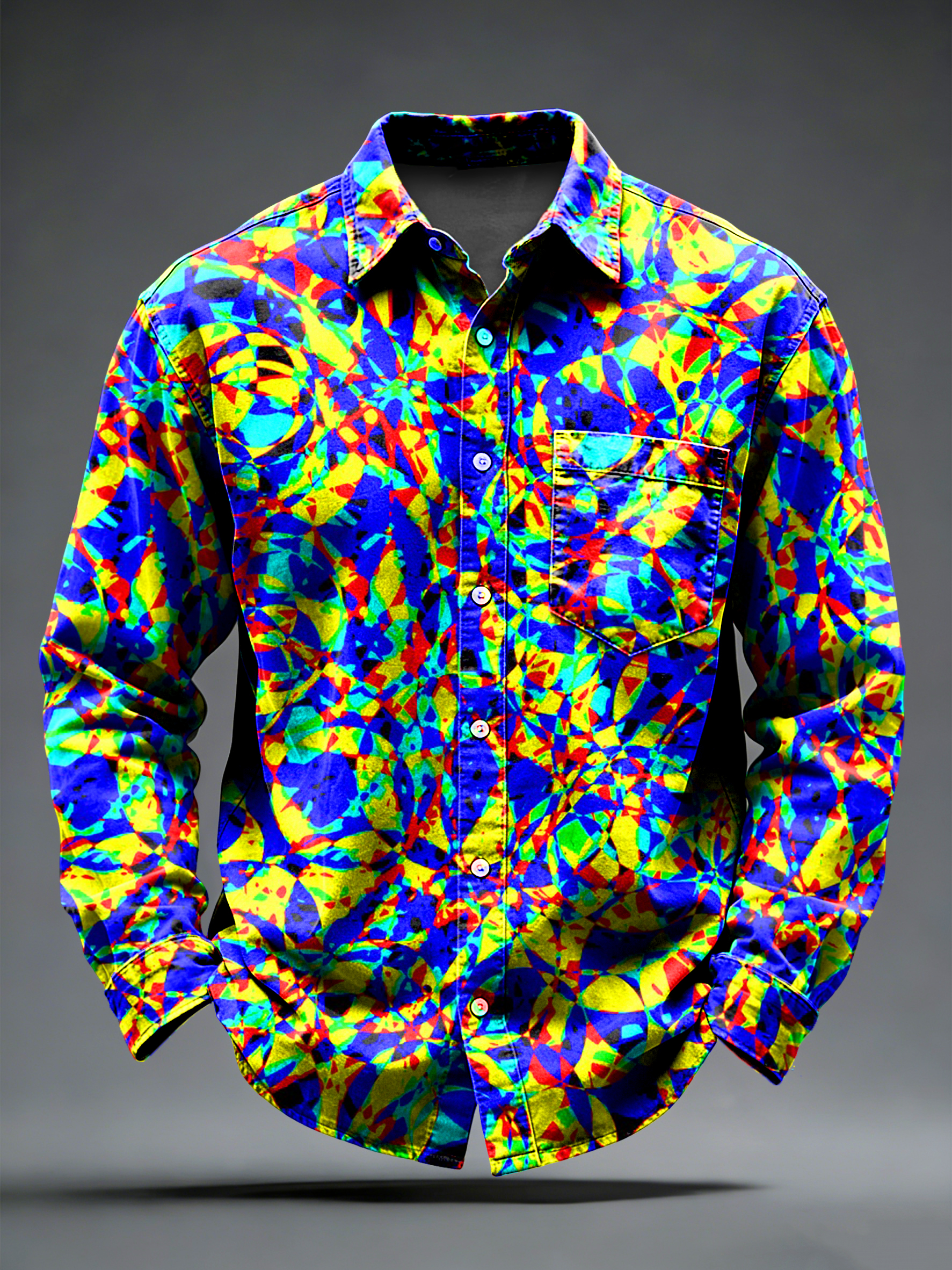Pánské retro psychedelické tištěné dlouhé rukávy kapesní košile