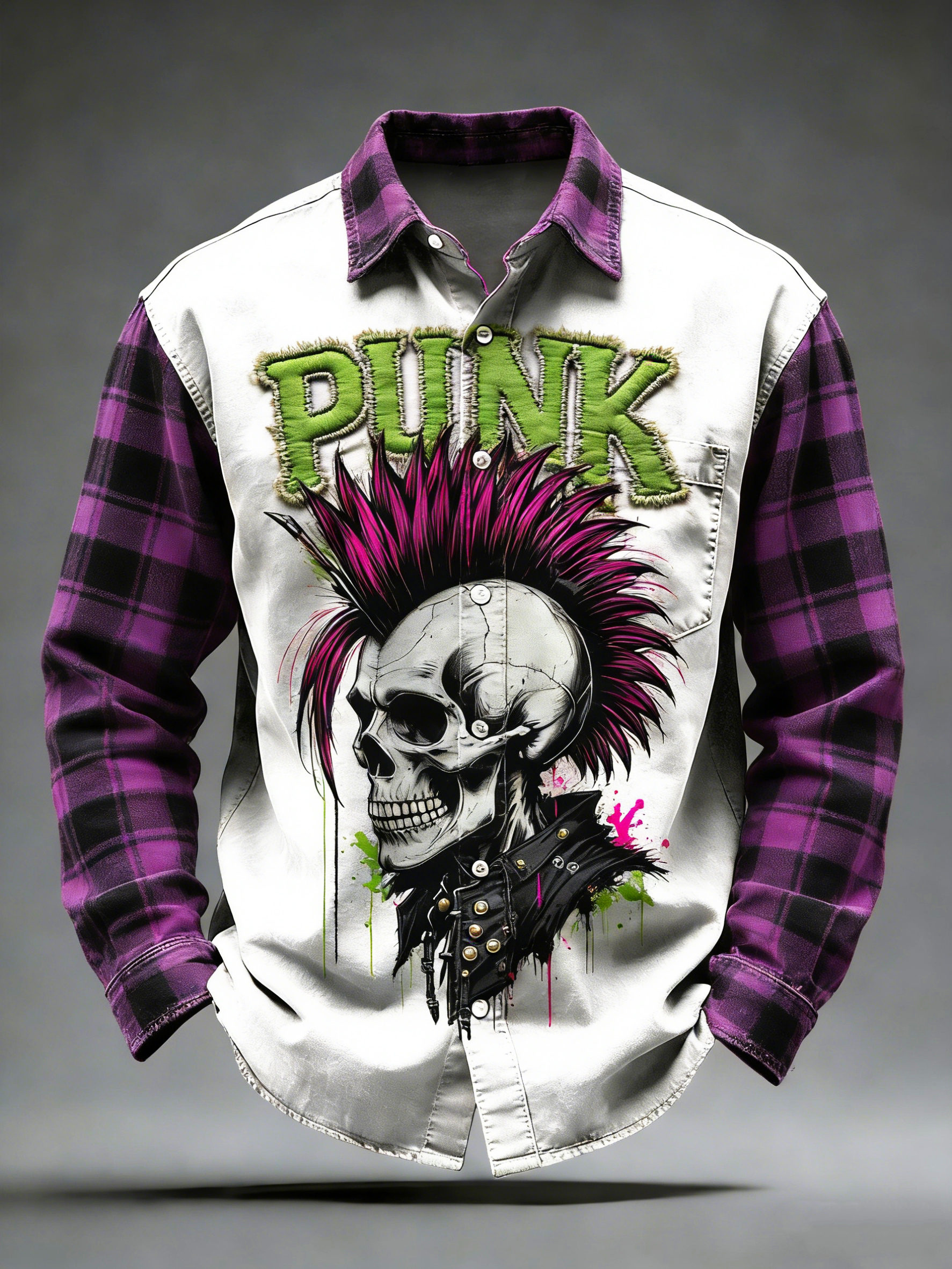 Pánské retro punkové lebky vytištěné dlouhými rukávy vreckové košile