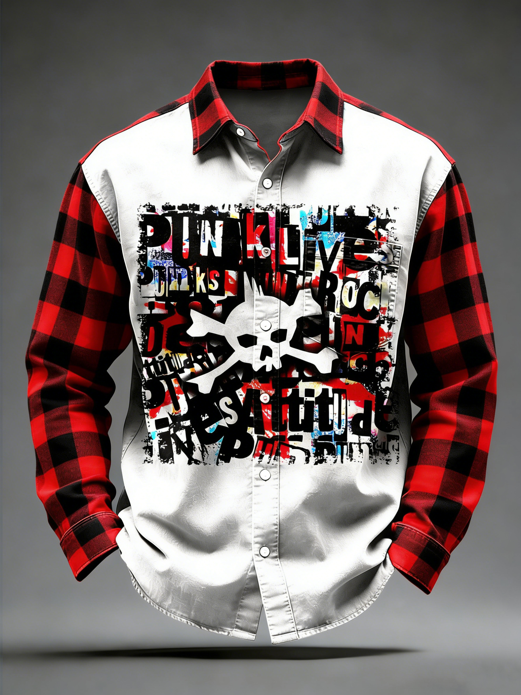 Pánské retro punkové lebky vytištěné dlouhými rukávy vreckové košile