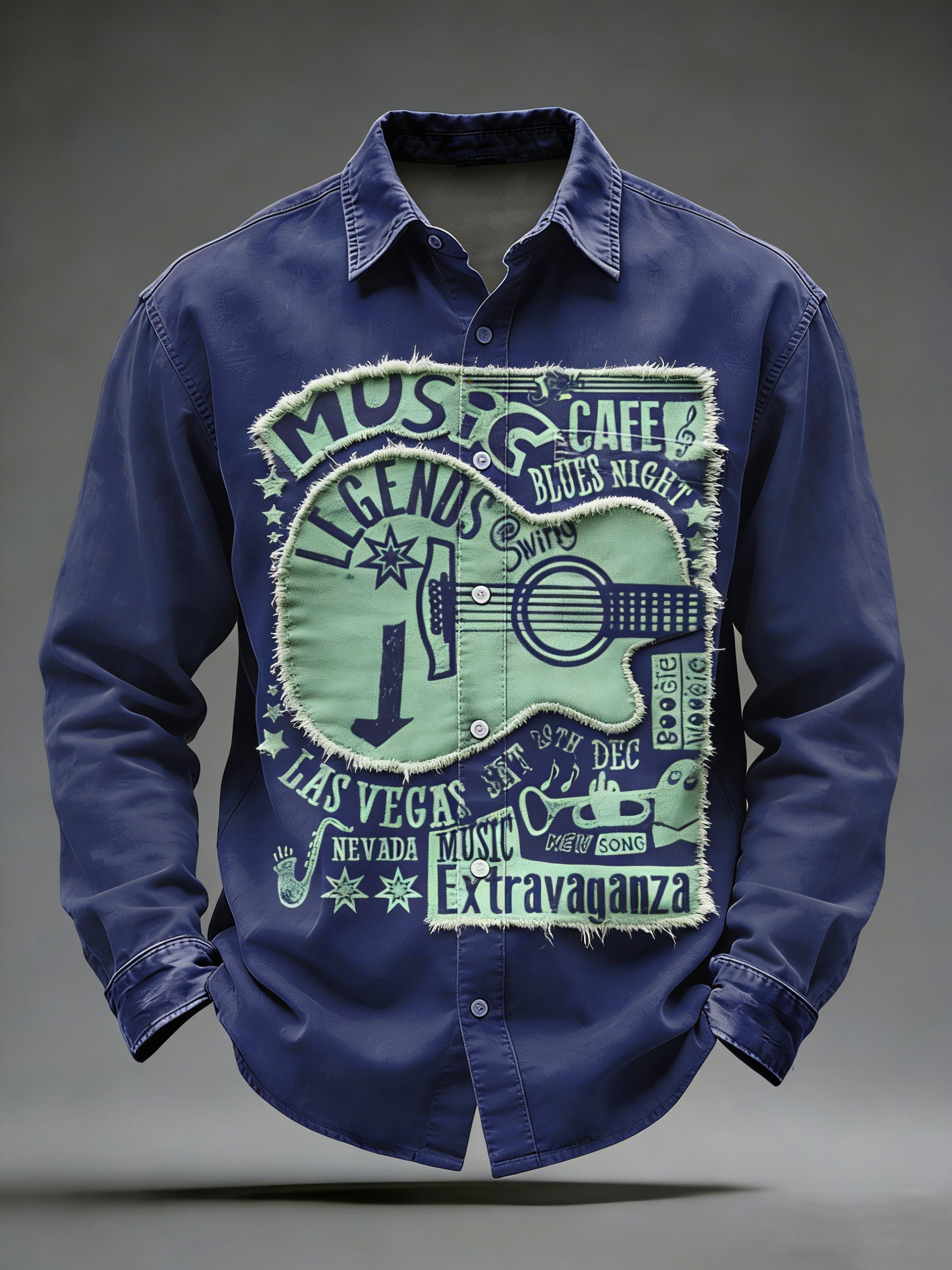 Pánské retro punkové tištěné dlouhými rukávy kapesní košile