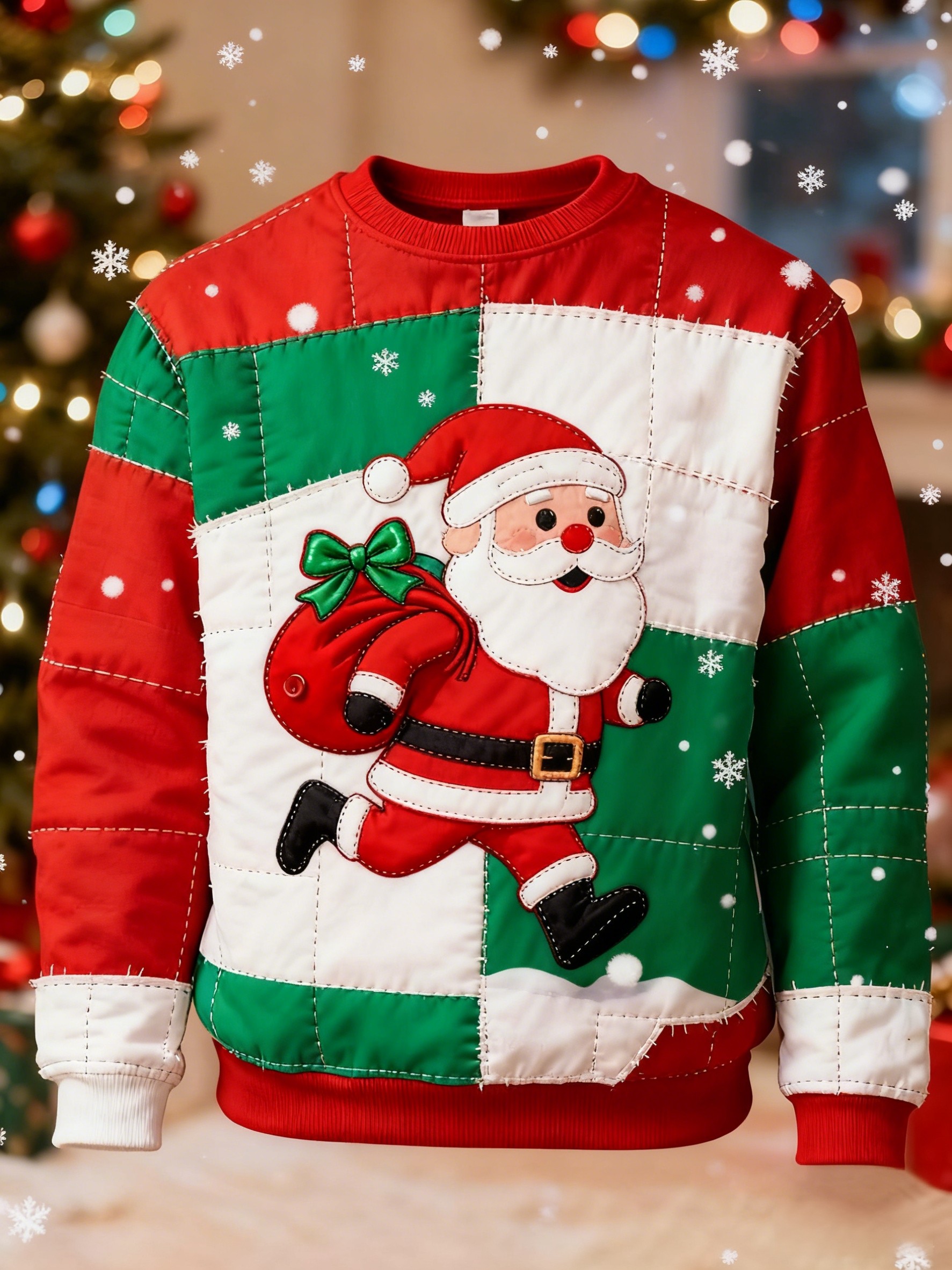 Pánské retro vánoce santa stitch art print casual dlouhý rukáv sweatshirt