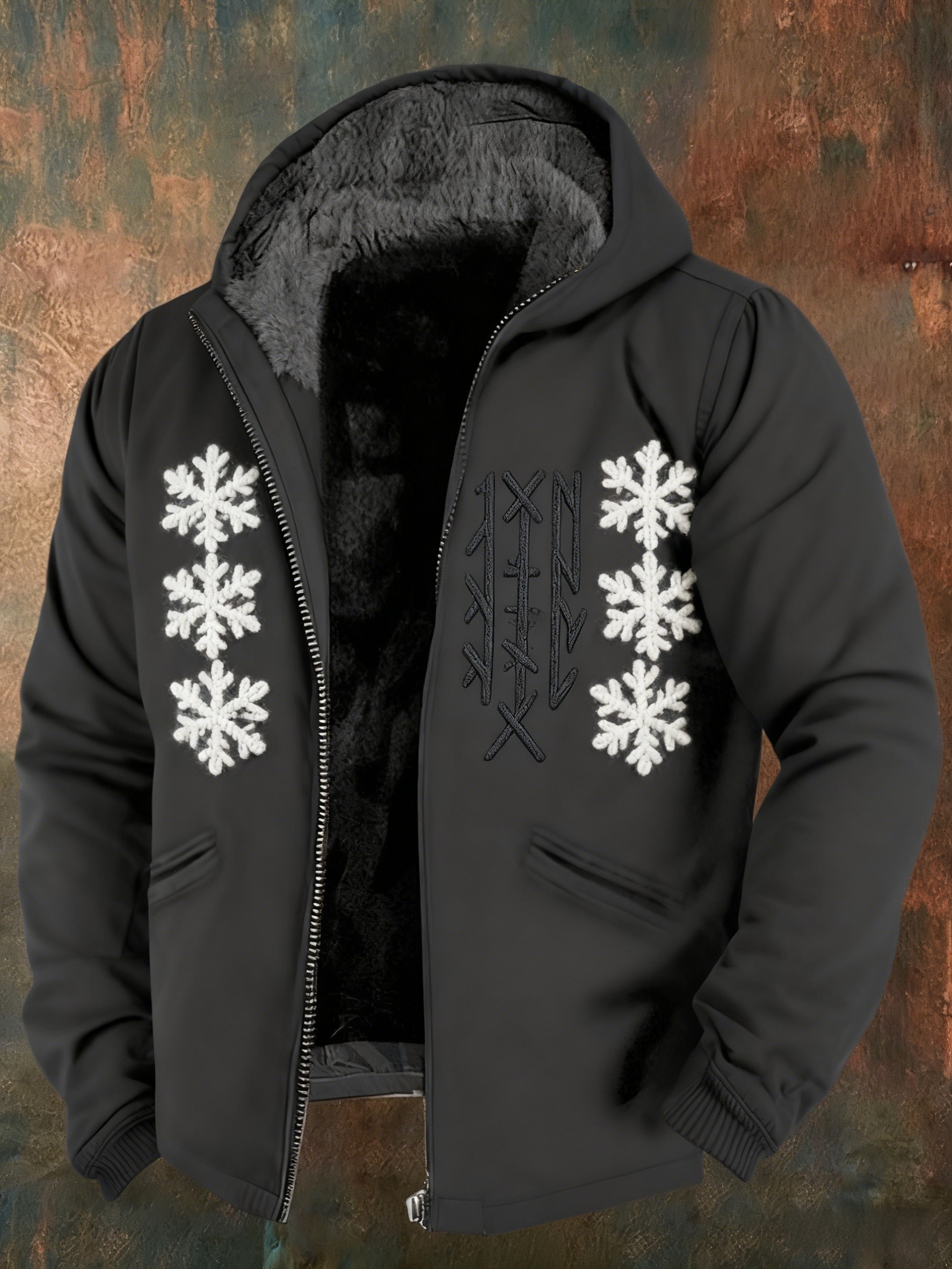 Pánské retro vikingské keltské uzel sněhová vločka tisk neformální zipup fleece s kapucinou bunda