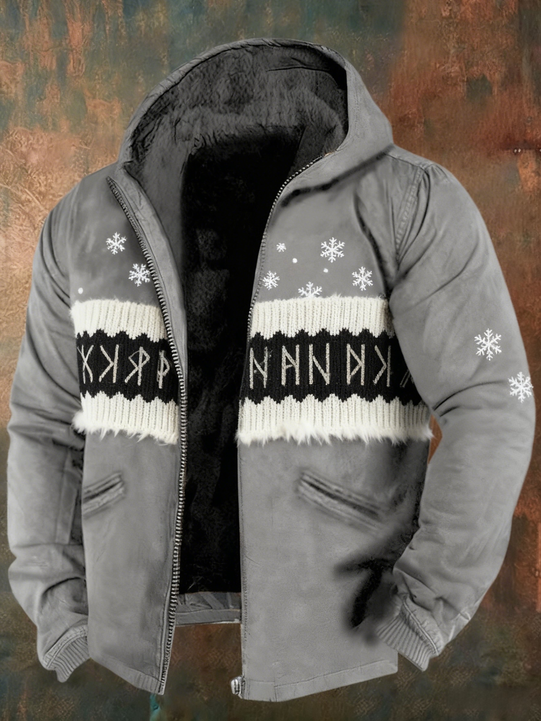 Pánské retro vikingské keltské uzel snowflake gradient tisk neformální zipup fleece hooded jacket