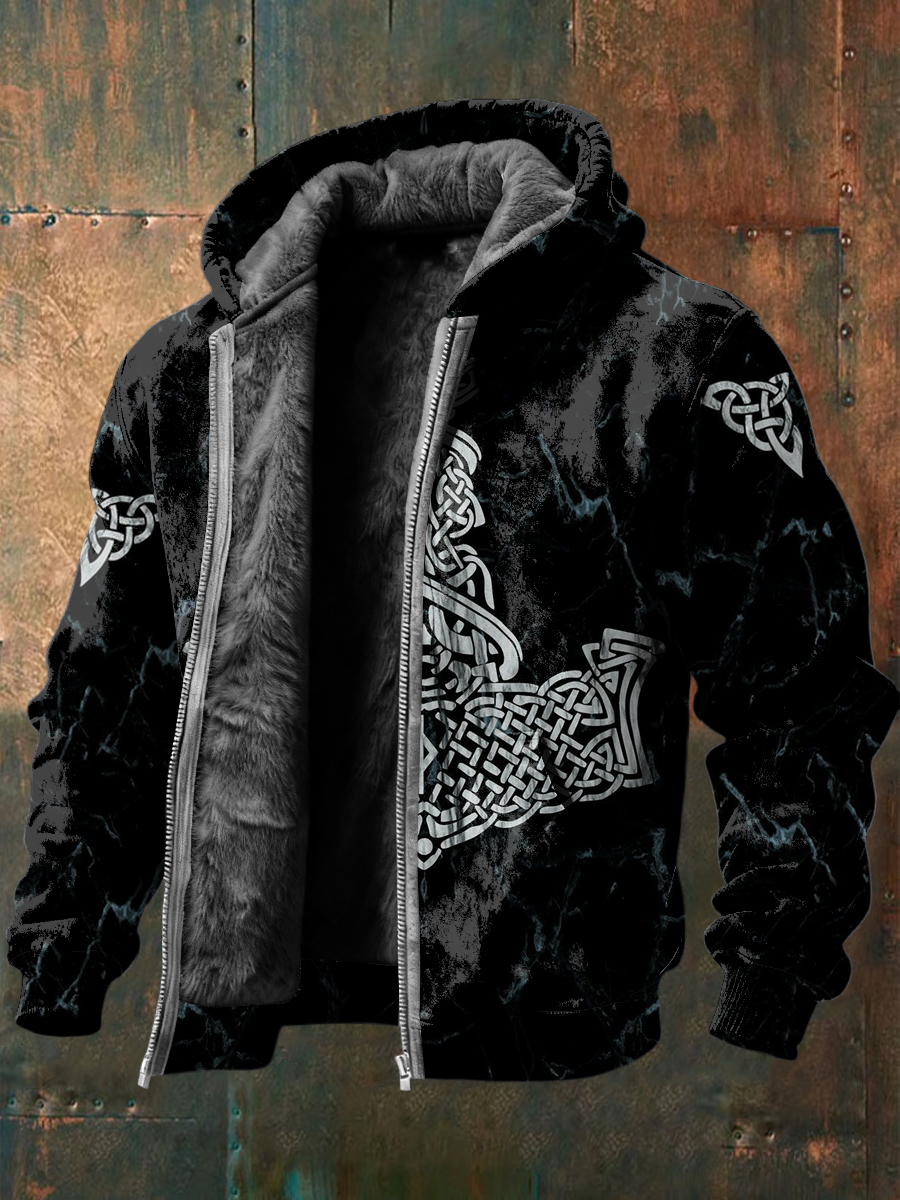 Pánské složité keltské uzel tisk fleecelemovaný zip bunda