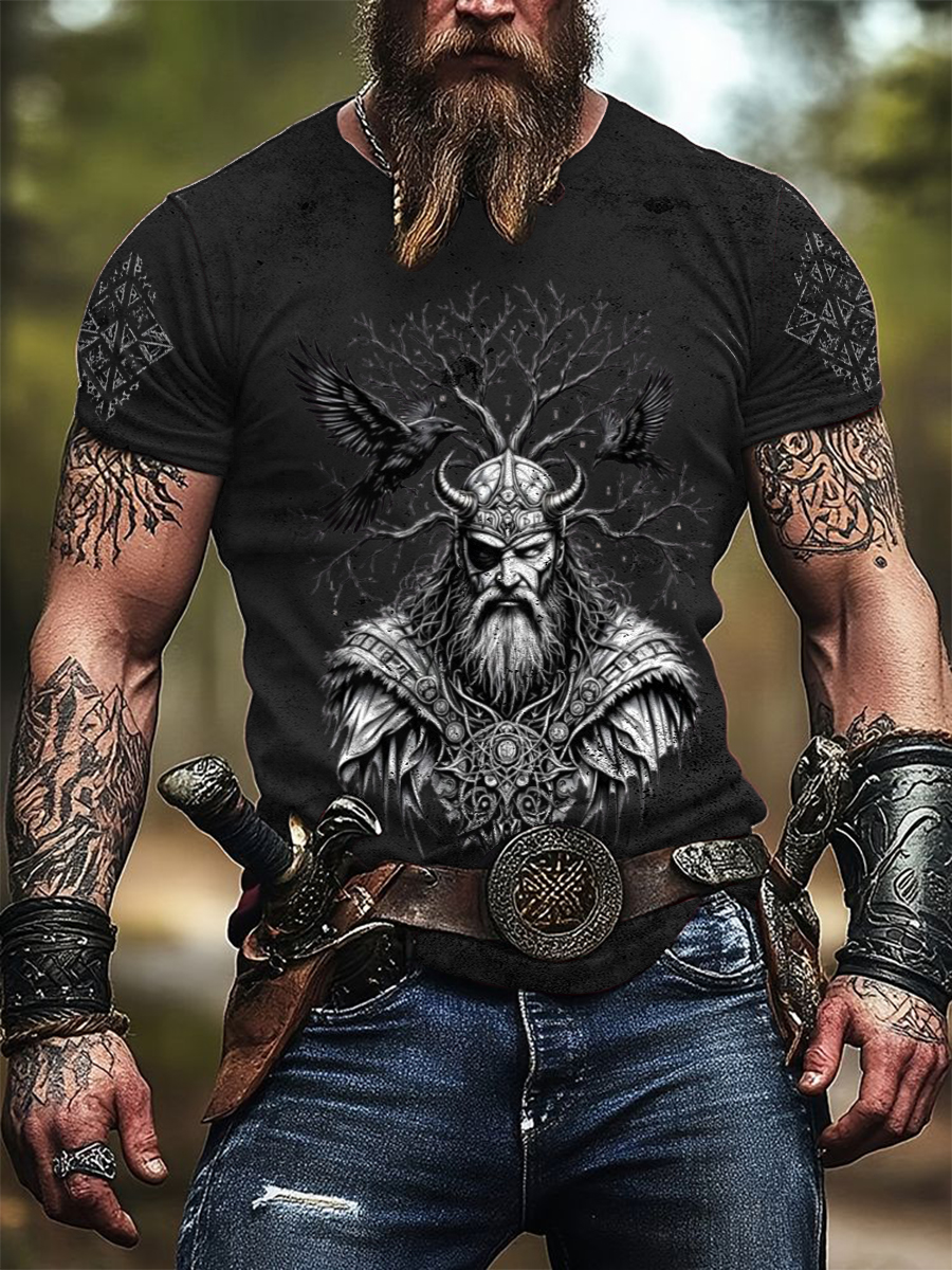 Pánské složité tshirt viking odin & ravens print