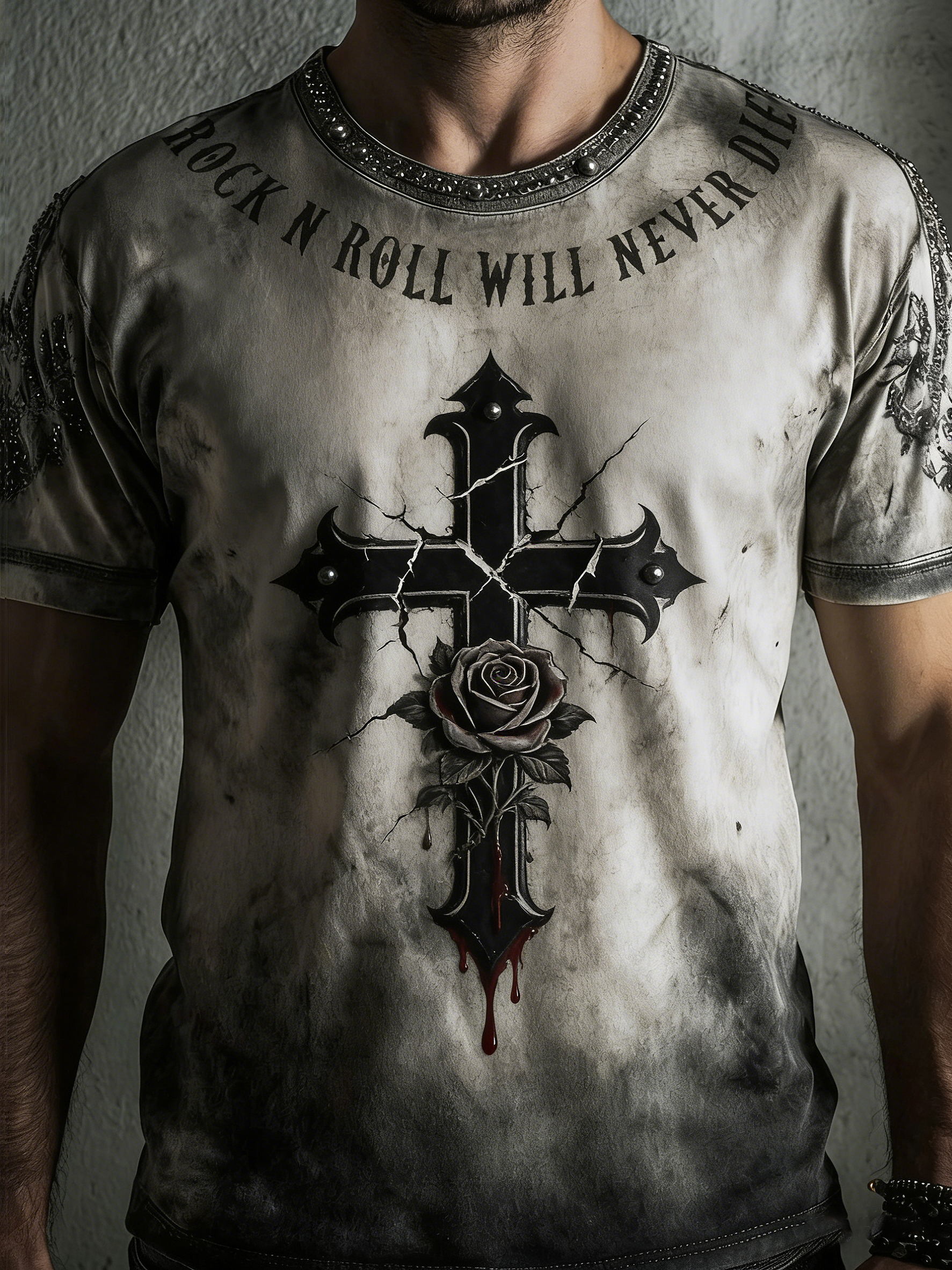 Pánské tmavé gotické tištěné vintage módy volné krátké rukávy tshirt