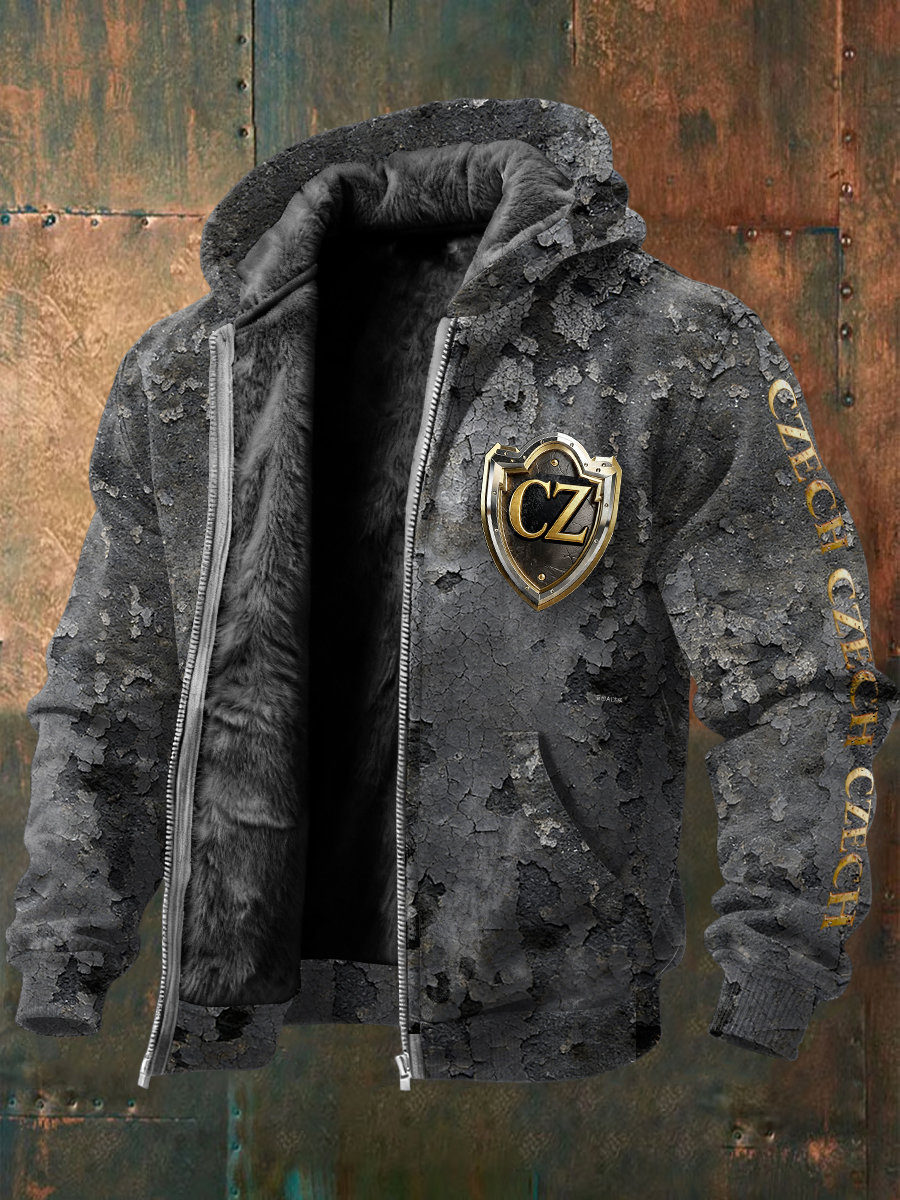 Pánské tmavě šedé lesklé pláště s kapucinou