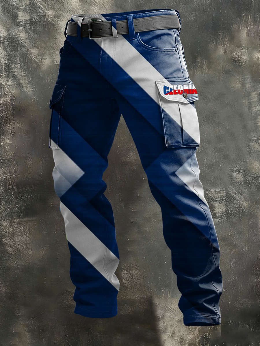 Pánské vibrant modrobílé české vlajky vzor nákladní kalhoty